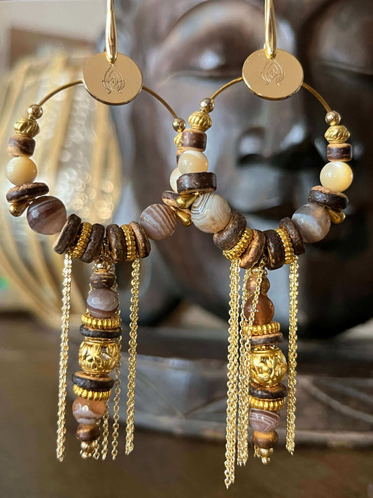 Créoles, pendants, pompons, coquillages, pierres fines...... Des boucles d'oreilles ethniques et bohèmes en matières naturelles...