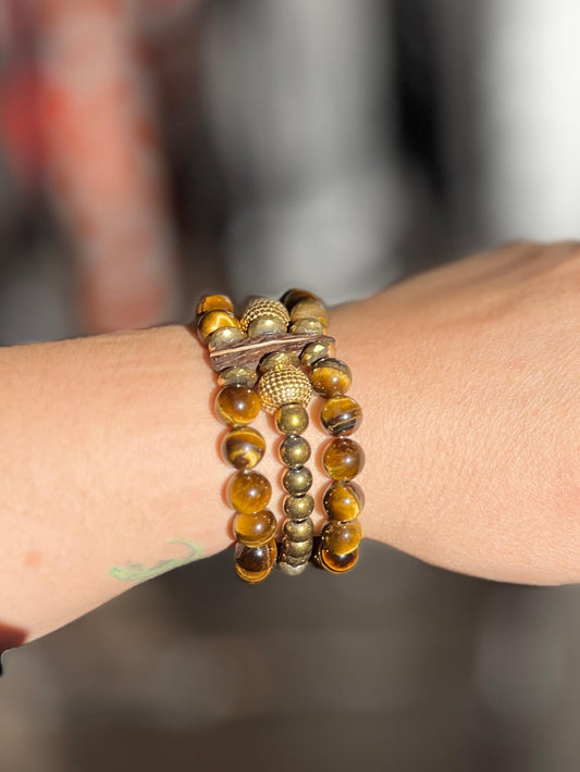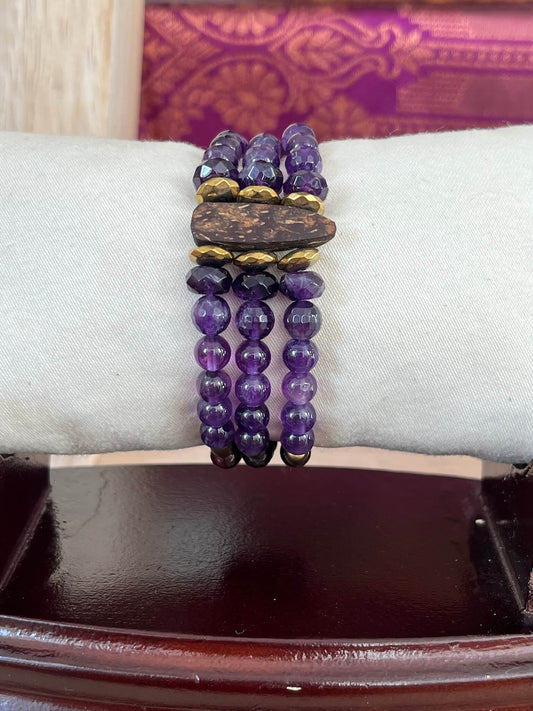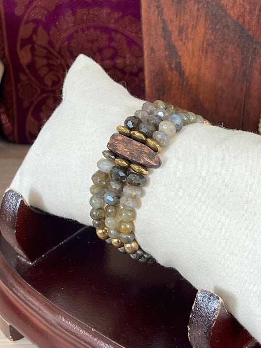 Manchettes et bracelets ethniques et spirituels en matières naturelles.