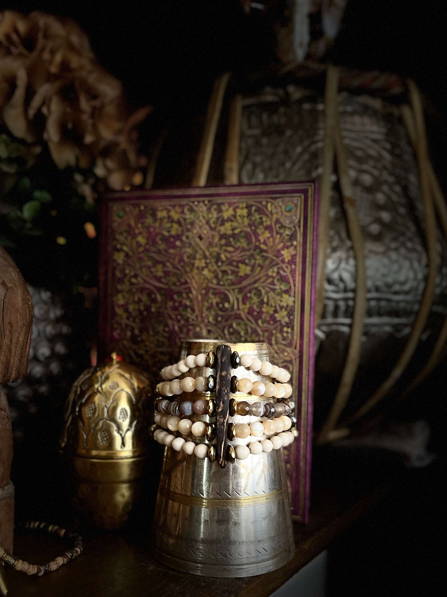 Je m'investis pleinement dans la création de ces bijoux ethniques et spirituels. Chaque bijou est bien plus qu'une simple création : il est le fruit d'une inspiration profonde, d'une connexion avec des énergies universelles. Comme un artiste laisse courir sa plume sur le papier lors d'une écriture automatique, je me laisse guider pour façonner des bijoux uniques, porteurs d'une symbolique puissante et d'un métissage singulier.