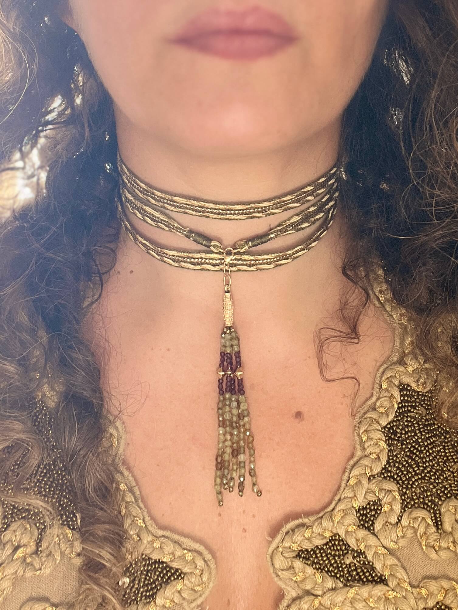 JANIS est plus qu’un collier : la couleur devient vibration et chaque mouvement révèle une lueur secrète. C’est un talisman bohème, libre et sensuel, pensé pour faire briller votre propre lumière intérieure.