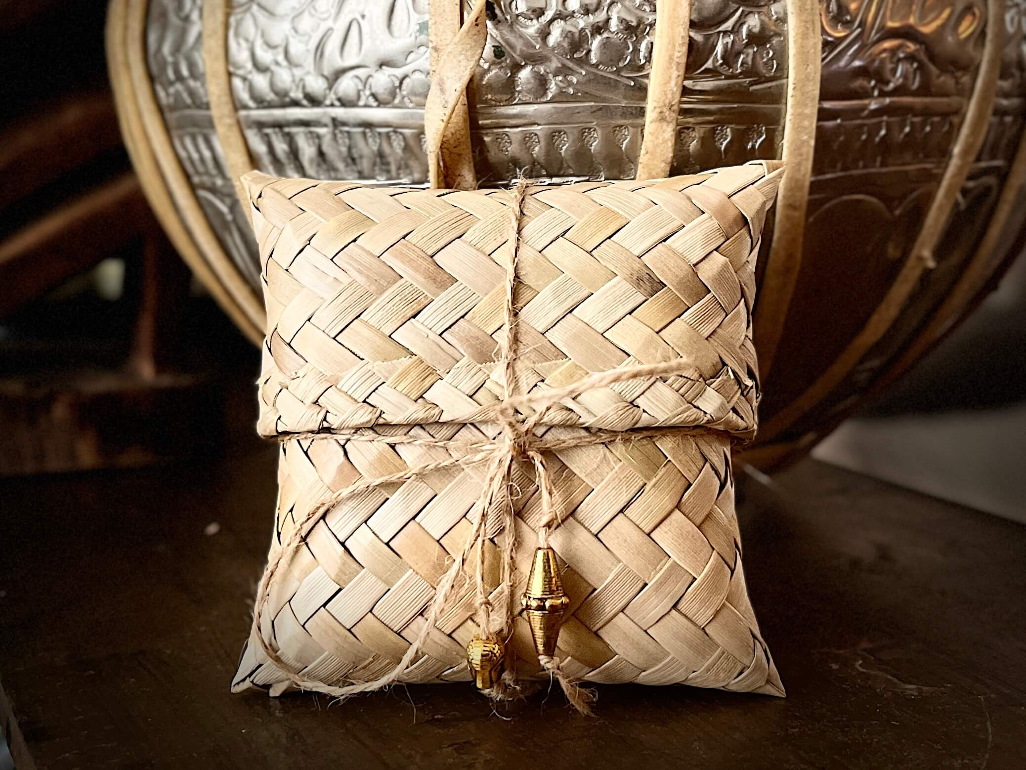 Les écrins et les pochons sont eux aussi le fruit d'un savoir-faire artisanal d'exception. Tissés avec amour et habileté par une artisane directement à Maurice, ces écrins en feuille de vacoa ont été créés sur mesure, exclusivement pour accueillir vos précieux bijoux Ayo-Mana. Chaque pochon et écrin raconte une histoire, portant en eux l'authenticité de leur fabrication artisanale.